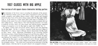 1937 CLOSES WITH BIG APPLE: New version of old square dance dominates holiday parties. Rise and Shine. Faith Clarke, buxom Sarah Lawrence student, "shines" with a professional. "Shining" is showing off individual step improvisations in the centre of a circle.