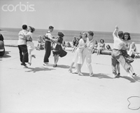 Swinging in the sandtime...on the sandy beach of Venice, CA, the jitterbugs have foregathered to put on one of the world's greatest swing jamborees. Some of the best in the country have entered in the California championships for all classes of jittery jitterbugs.